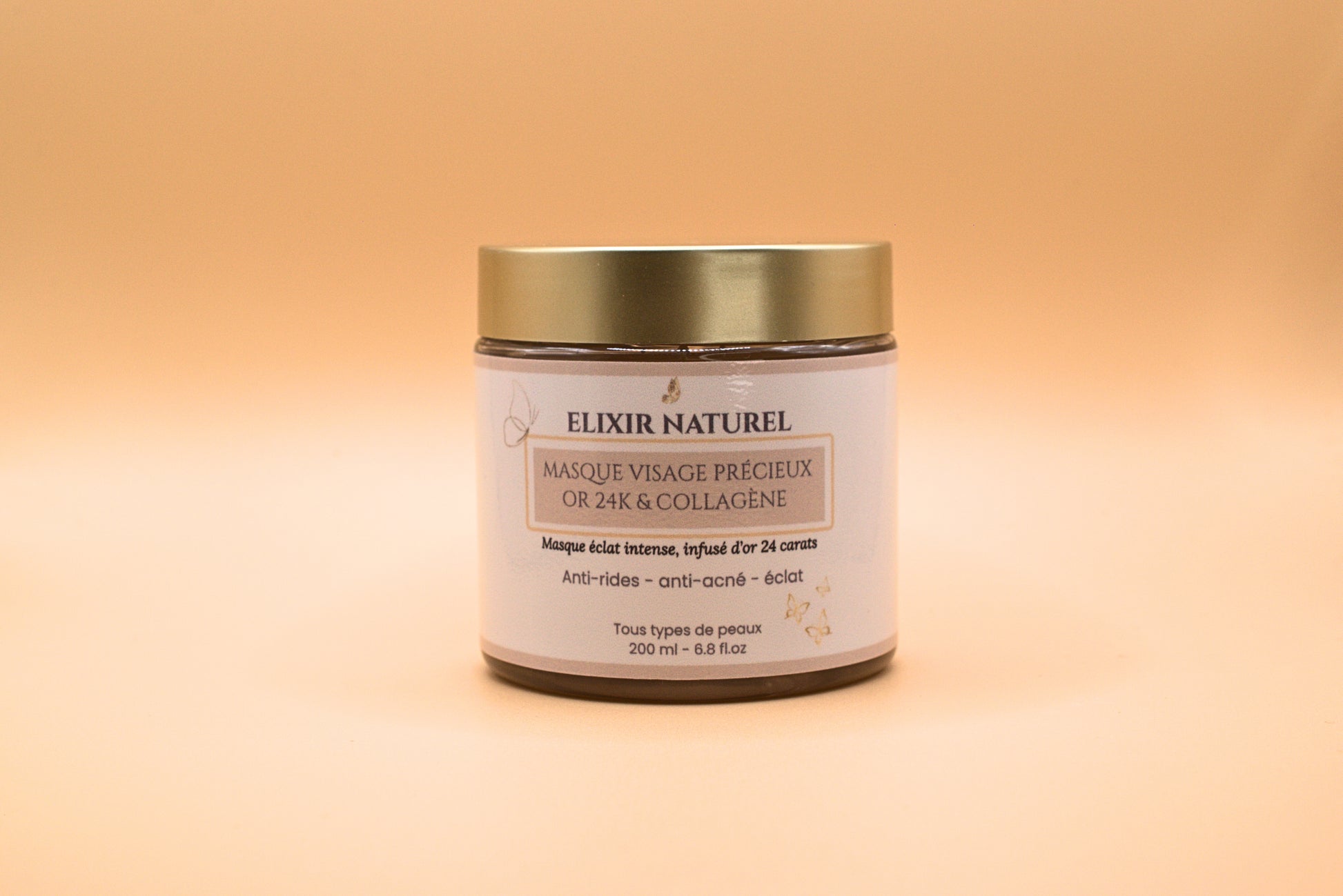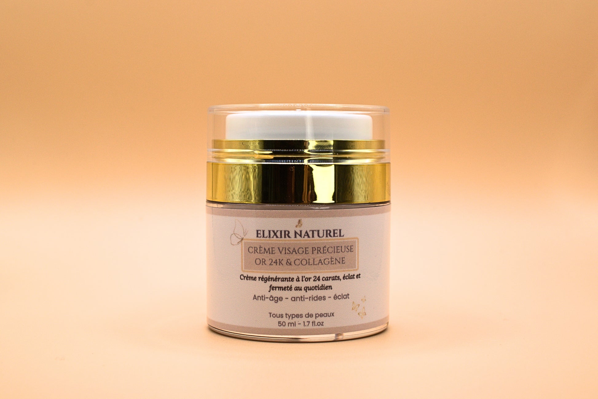 Crème Précieuse - Or 24K, eau, glycérine, polydimethylsiloxane, sodium acrylate/sodium glycidyl acrylate copolymère, collagène, vitamine E, iso hexadécane, extrait de lys, extrait de ginseng, acide hyaluronique, extrait de the, extrait de pepins de raisin, polycarbonate 80, rétinol, diazolidinyl urée.