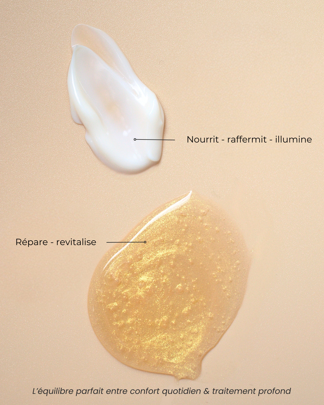 La crème nourrit, raffermit et illumine au quotidien, tandis que le masque apporte un soin intensif hebdomadaire pour réparer et revitaliser. Ensemble, ils offrent un équilibre parfait entre confort quotidien et traitement profond.